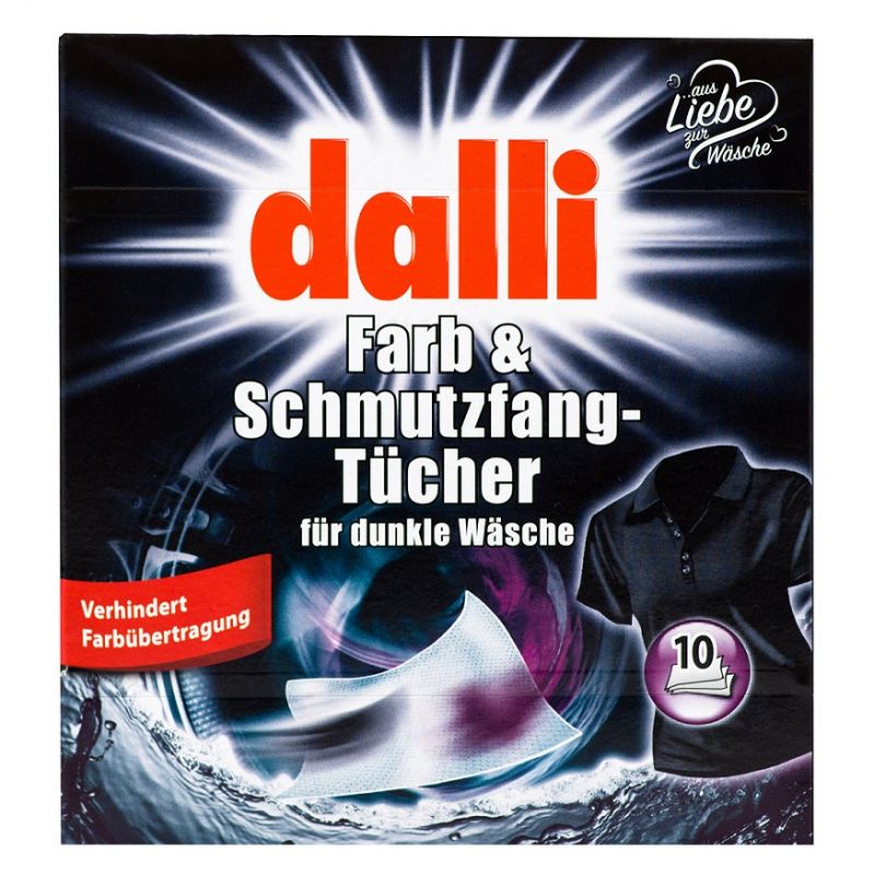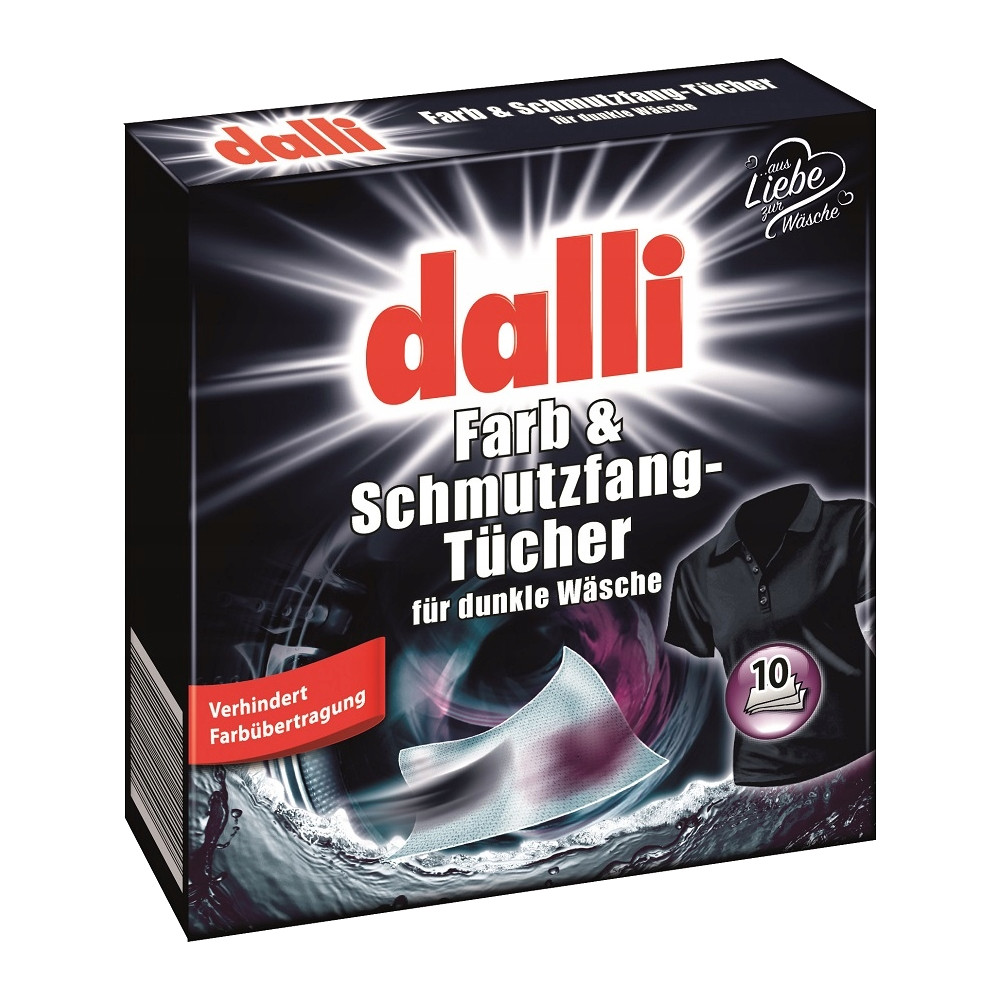 Chusteczki do prania ciemnych ubrań Dalli zapewnią Ci bezpieczne pranie Twoich ulubionych ciemnych ubrań ⭐ Specjalna formuła chusteczek sprawia, że wychwytują one pływające w wodzie barwniki i drobinki brudu, nie pozwalając im wniknąć w tkaniny. Po praniu ubrania zachowują swój intensywny kolor, a Ty wystrzegasz się zafarbowanych tkanin.