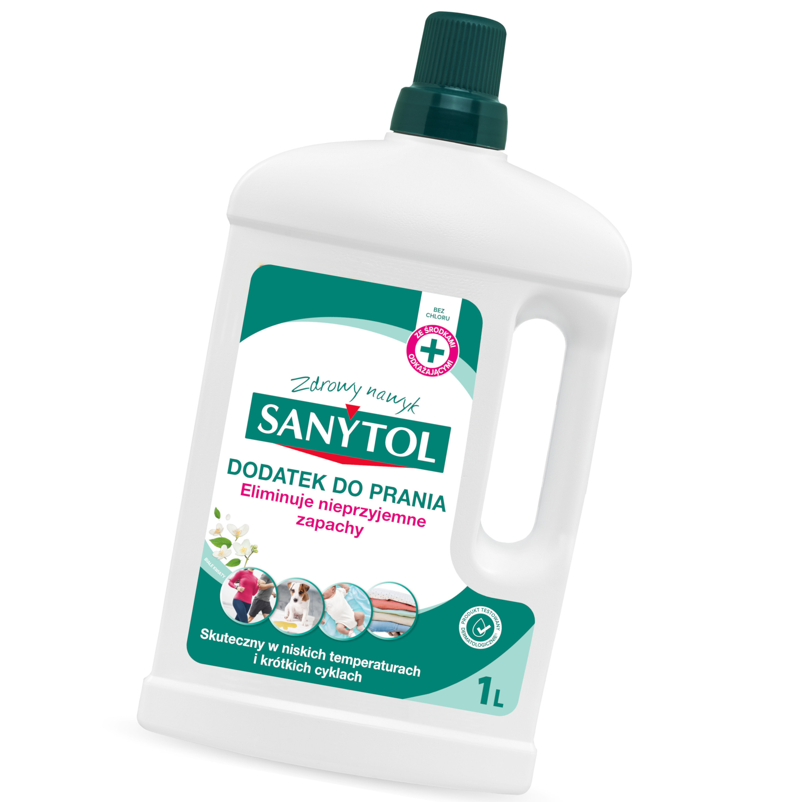SANYTOL to skuteczny dodatek do płukania prania, który eliminuje nieprzyjemne zapachy i odświeża w niskich temperaturach i krótkich cyklach ⭐ Jego świeży zapach nadaje ubraniom przyjemne uczucie czystości.