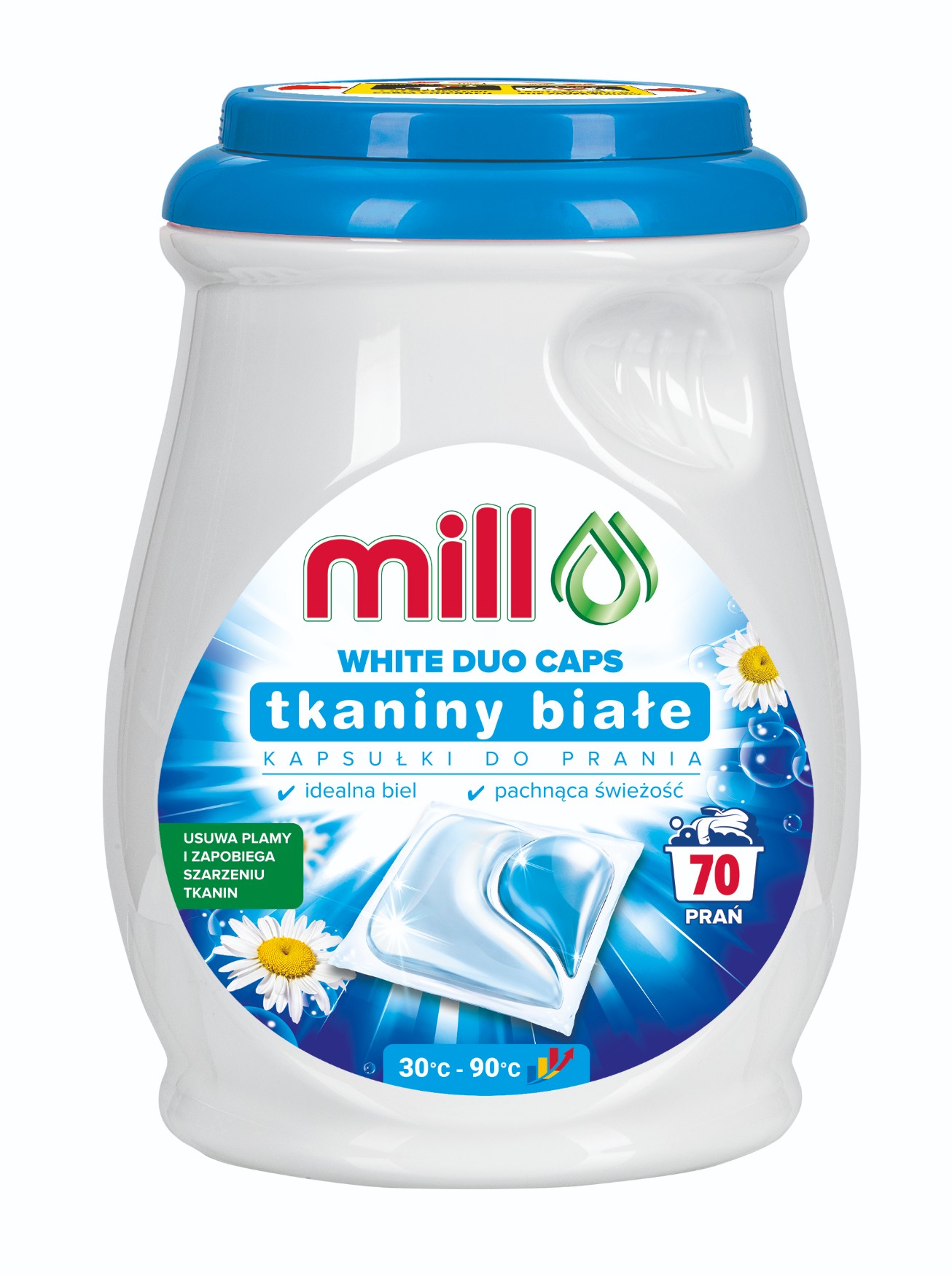 MILL Universal to kapsułki przeznaczone do prania białych i jasnych tkanin ⭐ Skutecznie chronią biel Twoich ubrań, usuwając uporczywe plamy.