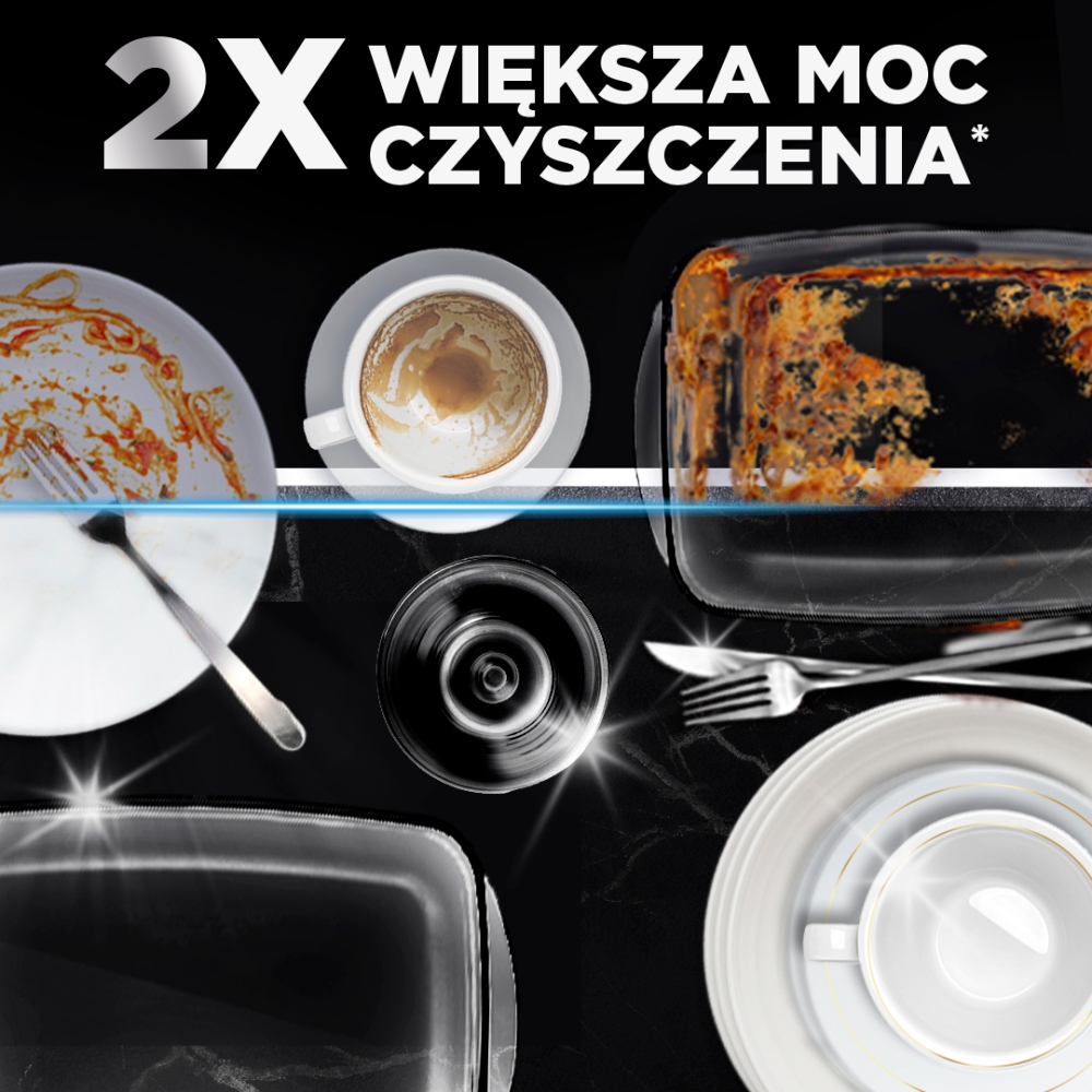 - Proszek z funkcją namaczania – usuwa przypalone i zaschnięte resztki jedzenia.