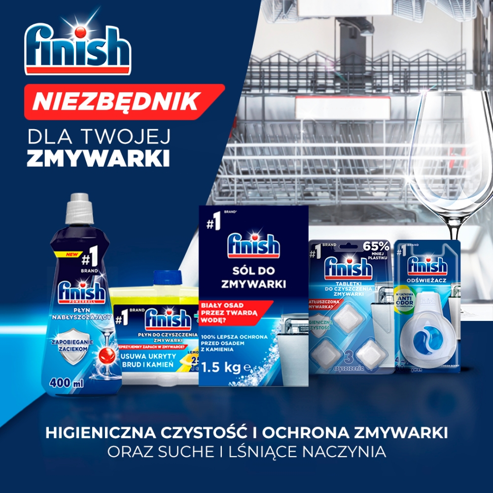 Osiągnij nieskazitelną czystość i olśniewający połysk z nową formułą Finish Quantum Ultimate ⭐ Dzięki technologii ActivBlu, kapsułki zapewniają wyjątkową skuteczność nawet w krótkich cyklach zmywania, eliminując potrzebę wstępnego płukania i namaczania naczyń.