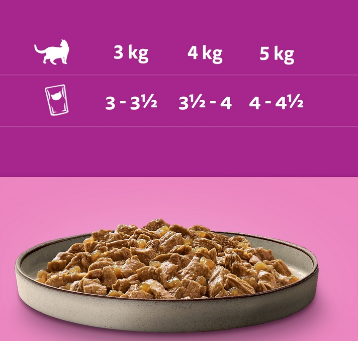 - Kot 3 kg – 3 do 3,5 saszetki dziennie