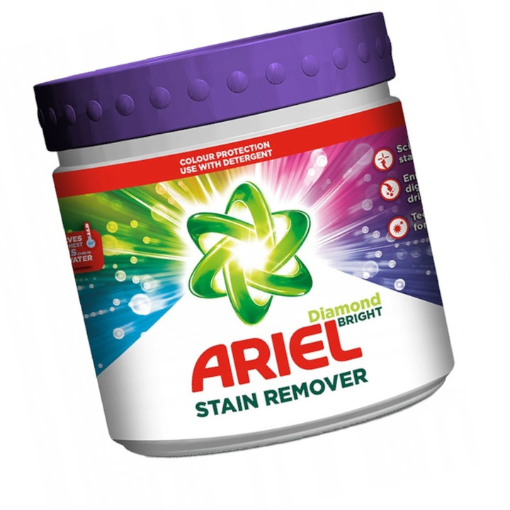 ⭐Odplamiacz do koloru ARIEL Stain Remover z miarką 500 g dzięki swojej formie głęboko wnika w tkaninę, skutecznie usuwa plamy oraz całkowicie się wypłukuje nie pozostawiając plam i zacieków.