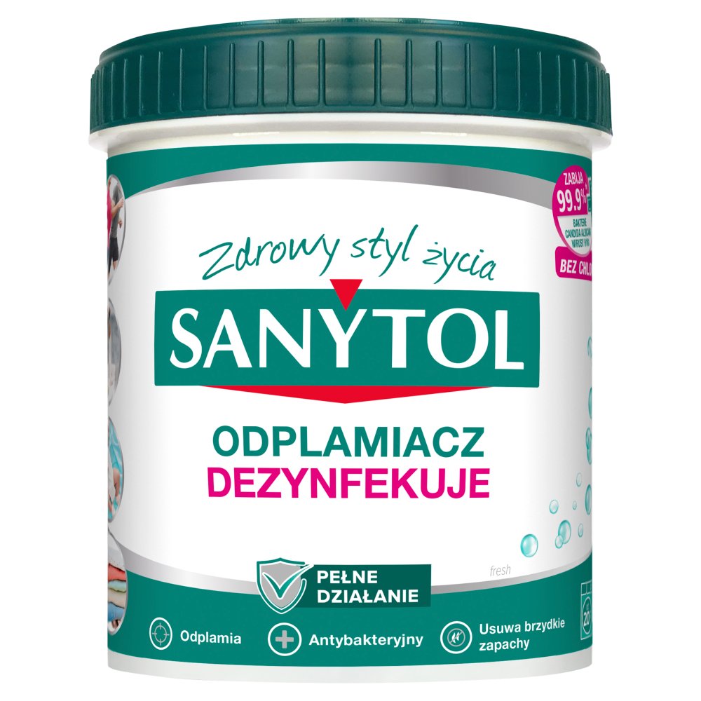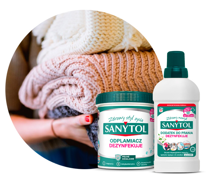 Sanytol jako ekspert w dziedzinie dezynfekcji bez chloru opracował Sanytol Odplamiacz dezynfekujący „Complete Action”, który zabija zarazki, nieprzyjemne zapachy i uporczywe plamy już w 30° C. Formuła preparatu wzbogacona o enzymy, dociera w głąb włókien, usuwa plamy, zapewniając nieskazitelną czystość tkanin.