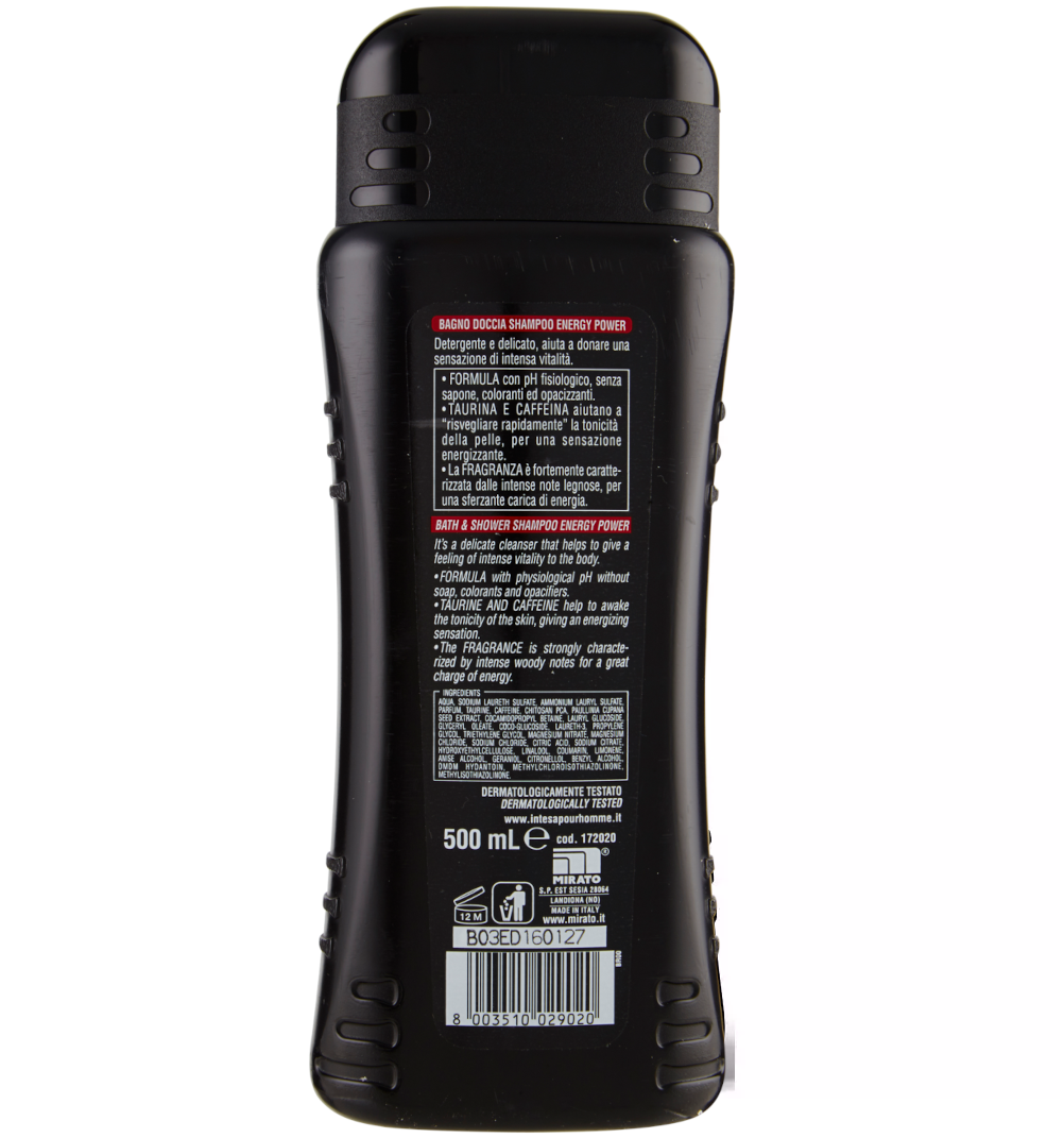 Intesa Energy Power Bagno Doccia Żel Szampon do ciała i włosów energetyzujący z tauryną i kofeiną 2w1 500ml