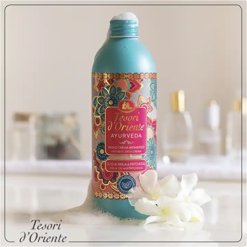 Tesori d’Oriente Ayurveda to kremowy płyn do kąpieli inspirowany starożytną filozofią równowagi ciała i ducha. Wzbogacony 5 cennymi składnikami ajurwedyjskiemi, delikatnie oczyszcza skórę, pozostawiając ją miękką, gładką i subtelnie rozświetloną.