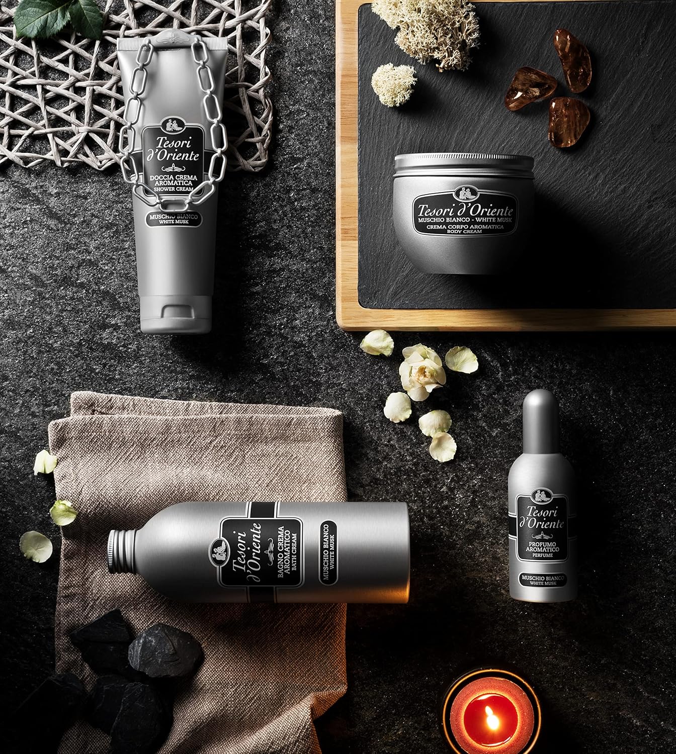 Marka Tesori d’Oriente zawiera kompleksową ofertę produktów kosmetycznych oraz m.in. produktów do prania i kosmetyków, które można wykorzystać do codziennych rytuałów relaksacyjnych. Rytuały te uwolnią Cię od stresów dnia codziennego i osiągniesz dzięki nim stan równowagi ciała i duszy.