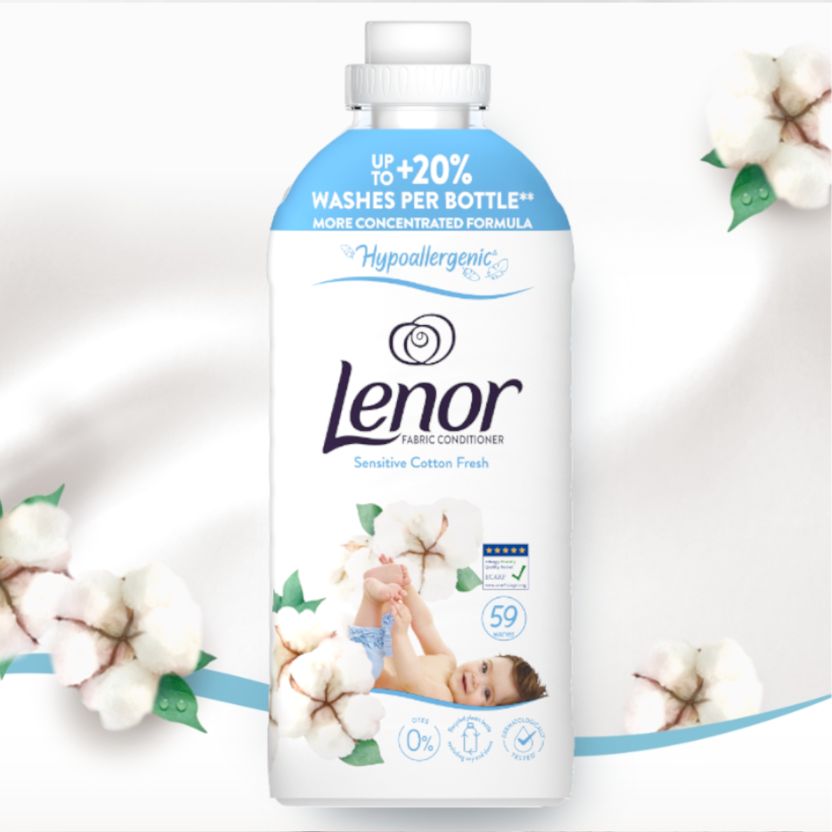 Dzięki płynowi do płukania Lenor Twoja skóra może cieszyć się esencją delikatności i subtelną czułością. Lenor Sensitive dba o Twoją skórę i skórę Twoich najbliższych. Ciesz się miękkim oraz przyjemnie pachnącym praniem.