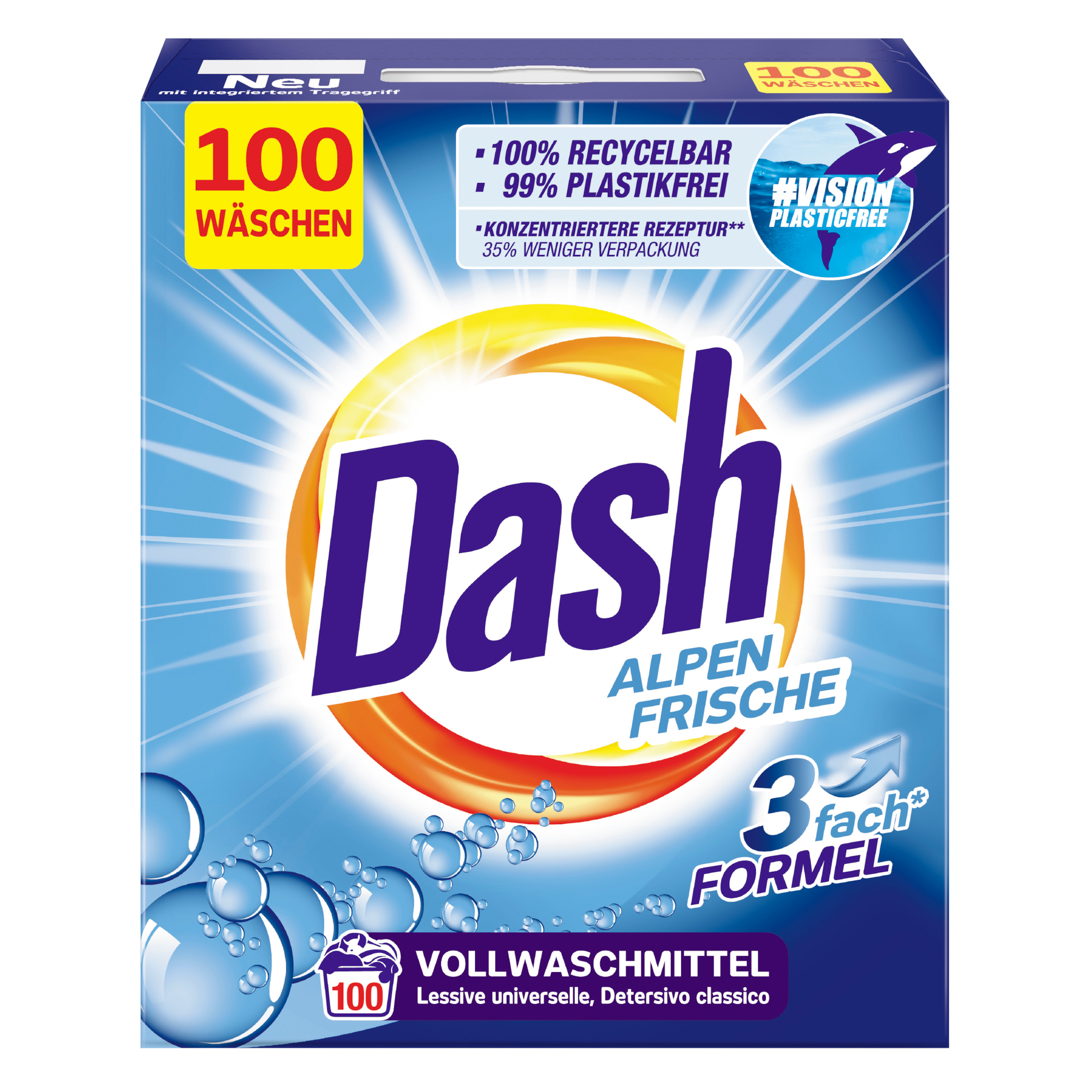 Dash ALPEN FRISCHE zapewnia efektywną czystość dzięki ożywczej, promiennej świeżości. Białe pranie pozostaje olśniewająco białe i jest aktywnie chronione przed szarzeniem. Plamy są usuwane juz po pierwszym praniu. Dash ALPEN FRISCHE jest uniwersalnym środkiem piorącym dla wszystkich, którzy kochają białe pranie.