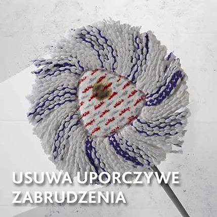 Zapas do mopa obrotowego Turbo 3w1 usuwa ponad 99% bakterii przy użyciu samej wody, bez konieczności stosowania detergentów. Czyści nawet uporczywe zabrudzenia i zaschnięte plamy.